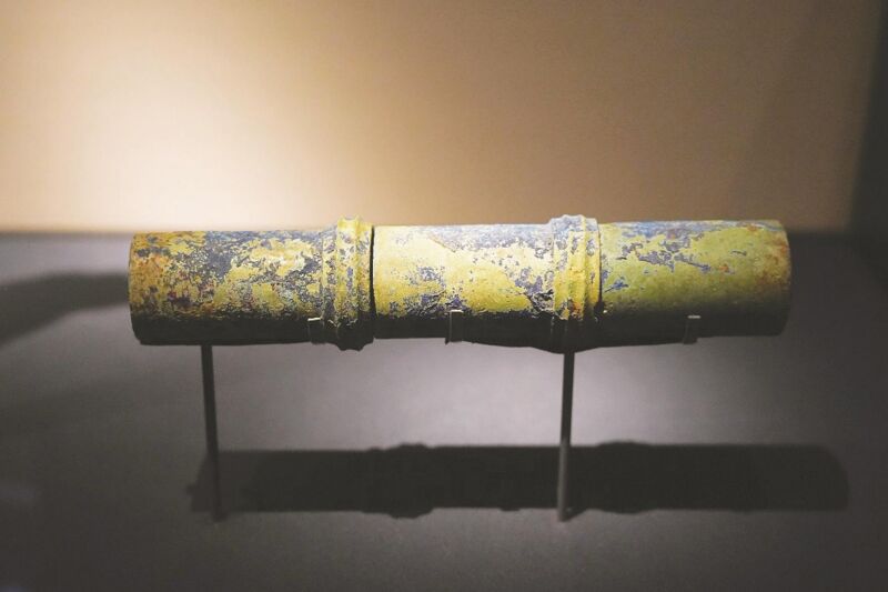 安徽楚文化博物館展陳的車軸銅套構(gòu)件。