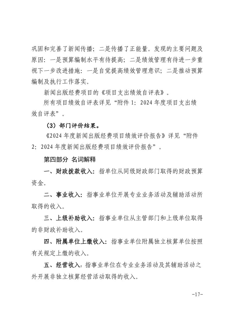 附件:1.2024年度項目支出績效自評表 2.2024年度新聞出版經費項目績效評價報告