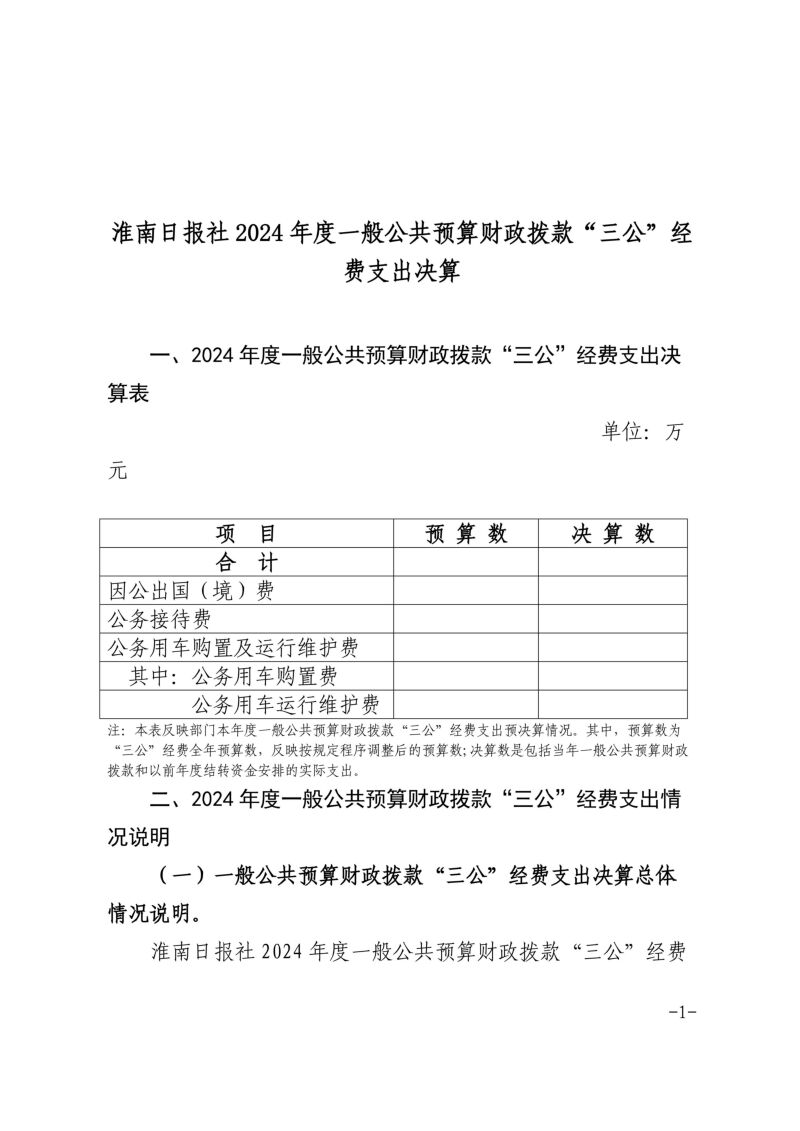 首頁 > 公告公示 > 淮南日報社2024年度一般公共預算財政撥款“三公”經費支出決算