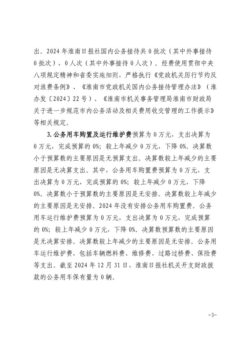淮南日報社2024年度一般公共預算財政撥款“三公”經費支出決算