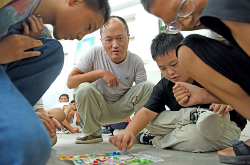 圖四:周勇利用課間休息與學生一起游戲。