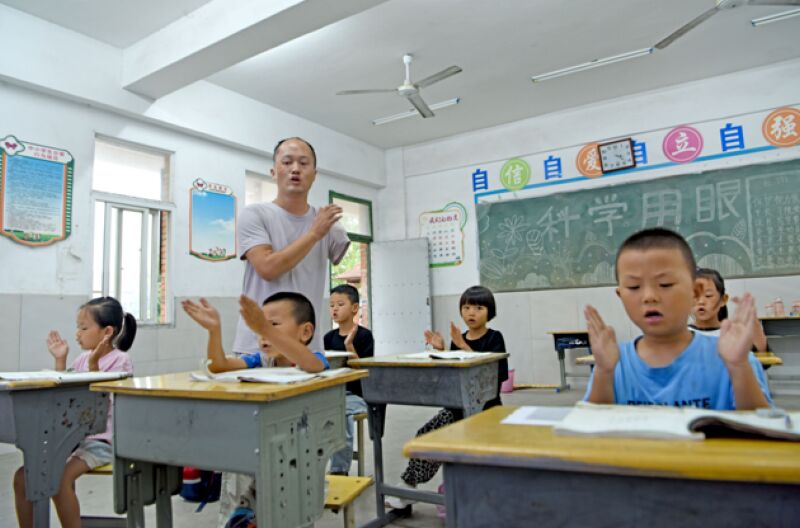 一年級語文課結束之后,五年級的數學課開始了。周勇仔細地給學生們一遍遍講解習題,再將他們一個個叫到黑板前解題,直到所有學生弄懂做對為止,同學們認真聆聽,完全沉浸在講解中,沒有人注意他空蕩蕩的左臂。