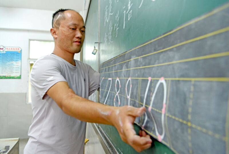 站在三尺講臺上的周勇始終謙遜和淡然,他用殘缺的手臂和不懈的努力書寫著對教育的忠誠,用實際行動為鄉村教育事業注入了新的活力與希望,“我現在一直在與更優秀的教師學習交流,進一步提高專業能力素養,在工作中也一直有新的想法,希望把更多更好的知識傳授給我的學生”。