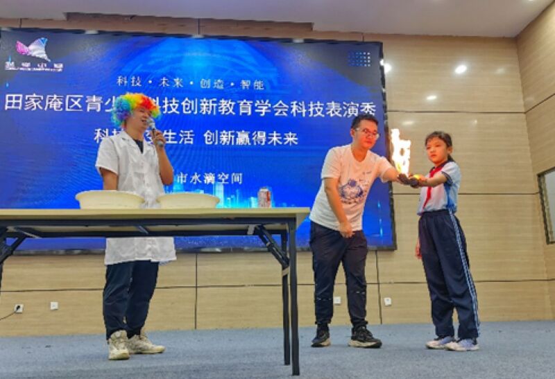 在開幕式上,與會嘉賓分別為田家庵區“弘揚科學家精神”演講比賽獲獎選手、淮河中學“科技小專家”和“科技小達人”進行了頒獎。活動現場展示了市科協推出的首批“淮南市精品科普研學路線”,三條精品線路分別涵蓋了淮南的楚漢文化、煤礦開采技術發展與應用等多方面內容,時空跨越千年,生動展現了古人智慧和現代科技的融合發展,為田家庵區中小學開展校外科普課堂提供了重要參考。現場最受歡迎的環節是科普工作者帶來的科技魔法秀,掌中火、神奇泡泡秀、氣球風火輪、海洋球機關槍、空氣炮……活動名稱極具吸引力,科普工作者還邀請孩子們一起參與,讓他們在互動體驗中感受科學趣味、學習科學知識。