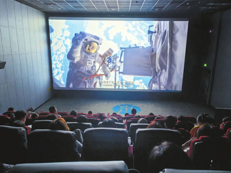 影片以神舟十三號飛行乘組首次在軌駐留6個月的真實任務為背景,通過極具中國式太空美學的影像語言,呈現出一段震撼而壯美的太空旅程。觀影過程中,青年們全神貫注,深深被浩瀚宇宙的奇景和航天員們不畏艱難、為國奉獻的精神所打動。許多觀眾在映后表示,影片中航天員從“窗外”眺望藍星的視角,不僅展現了地球的瑰麗,更折射出一個國家、一個民族為夢想而不懈奮斗的偉大征程。
