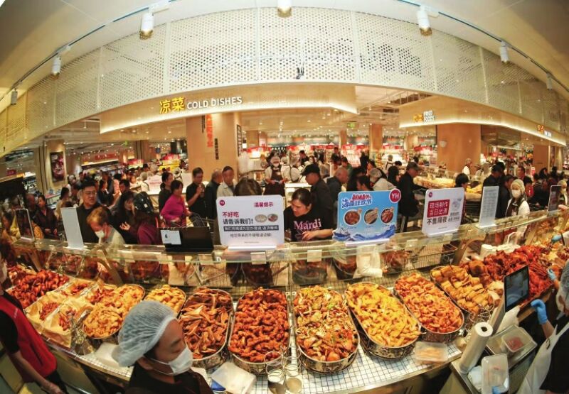 正值中秋、國慶雙節(jié)臨近,門店還圍繞“雙節(jié)同慶幸福團圓讓品質生活觸手可及”主題,推出陽澄湖大閘蟹、健康現(xiàn)烤月餅等節(jié)日商品,提供免費禮品包裝、寄存等服務,還開展“歡樂抽盲盒”“小紅書打卡送花燈”等互動活動。