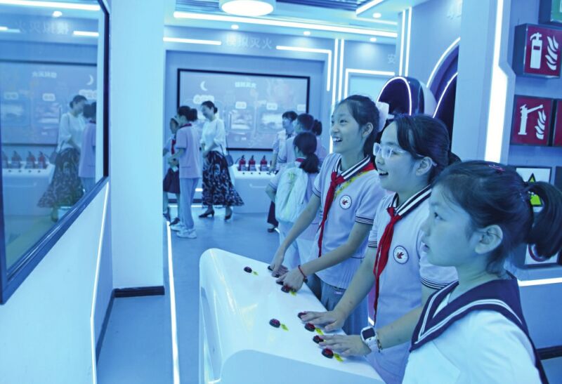 在安全教育館,同學們通過安全知識競答、4D互動體驗、119模擬報警、模擬滅火、安全隱患排查、建筑樓宇煙霧傳播模型認知、電氣火災成因講解、VR安全實訓體驗等互動項目,沉浸式感受地震、洪水、火災等場景,掌握安全常識、火災報警及滅火器使用技能,有效提升安全素養。