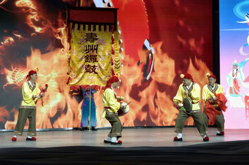 整場演出地方特色濃郁。省級非遺壽州鑼鼓《喜鵲登枝》氣勢磅礴,國家級非遺花鼓燈《扇風(fēng)》靈動歡快,好戲相繼登場,集中展示了淮南深厚的文化底蘊。