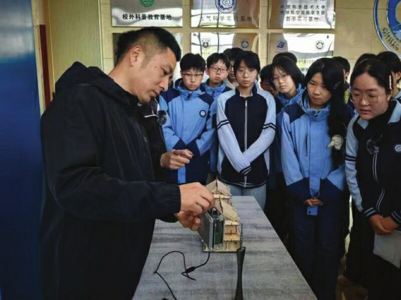二十四節氣館內,學生們圍在“節氣農事互動屏”前,跟著動畫演示模擬春耕、夏耘的流程。在壽縣國家氣候觀象臺,40名學生在觀測員的指導下,嘗試讀取氣溫、濕度數據,將書本理論轉化為可操作的實踐體驗。