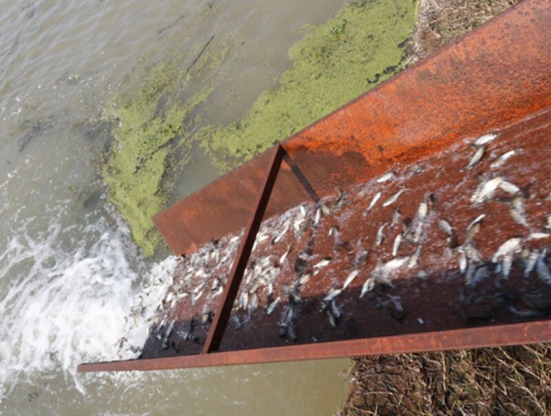 淮南從2008年開始在淮河水域開展增殖放流,經多年放流,如今放流作業已十分專業且迅捷。除放流展示環節外,其余放流行動則是將魚苗運輸專用車盡量靠近河邊,然后將車上連接出口的管袋通過鐵制水槽接入河中。隨著閘閥的開啟,水流沖出,魚兒沿著槽道躍入河水之中。這種方式既保護魚苗,確保成活率,又提升了放流效率。