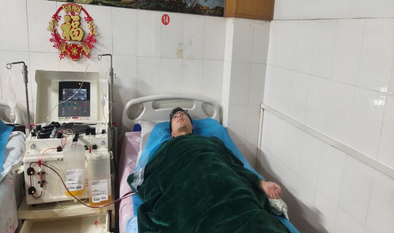 淮南聯(lián)合大學(xué)醫(yī)學(xué)院學(xué)生張東躍捐獻(xiàn)血小板救助患者(圖片由淮南市新時(shí)代志愿者聯(lián)合會提供)