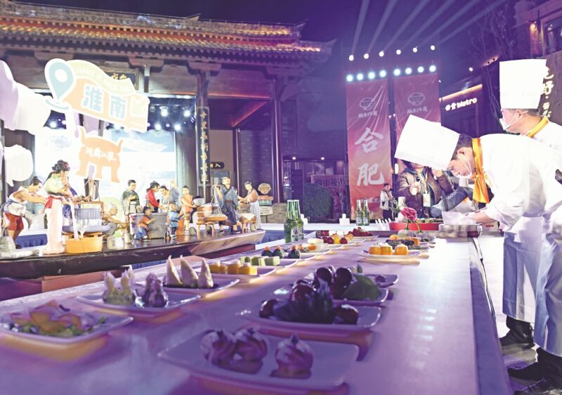 淮南、合肥、蚌埠、六安四市展示地方特色菜。