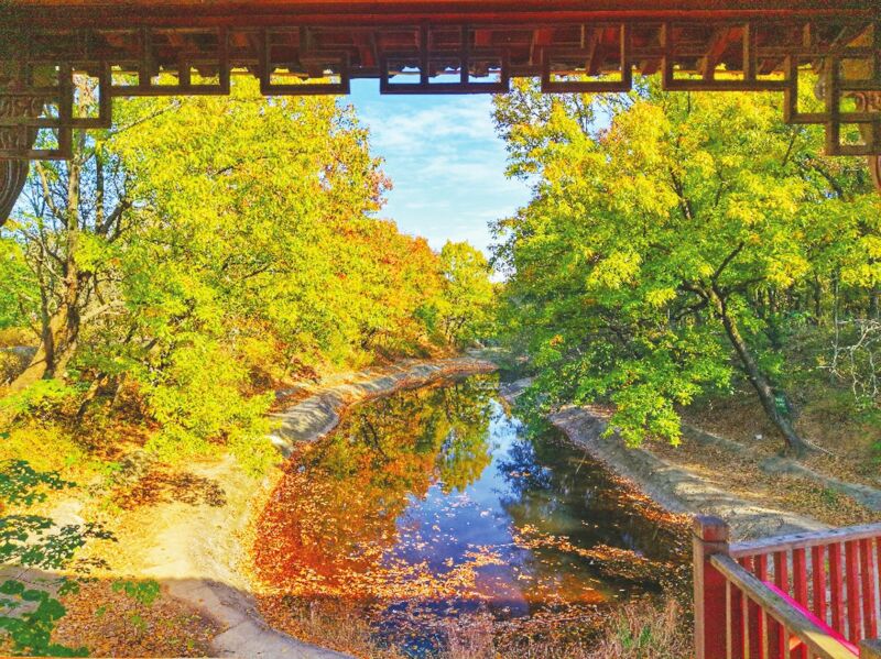 初冬時(shí)節(jié),位于舜耕山南麓的慈母溪迎來一年中的最美時(shí)刻。清晨的陽(yáng)光透過色彩斑斕的樹葉,讓靜謐的水面有了生機(jī),藍(lán)天白云映照其間,與溪面上金黃的落葉相映成趣,讓人忍不住放慢腳步,沉醉在慈母溪初冬獨(dú)有的清冽與詩(shī)意中。