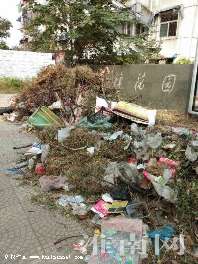 近日,淮河早報、淮南網記者接到市民反映,稱他所居住的小區(qū)17和18號樓之間的垃圾沒有清理,連續(xù)三天,物業(yè)都不管不問。隨后,5月14日下午,淮河早報、淮南網記者趕到市民所說的前鋒花園小區(qū)。