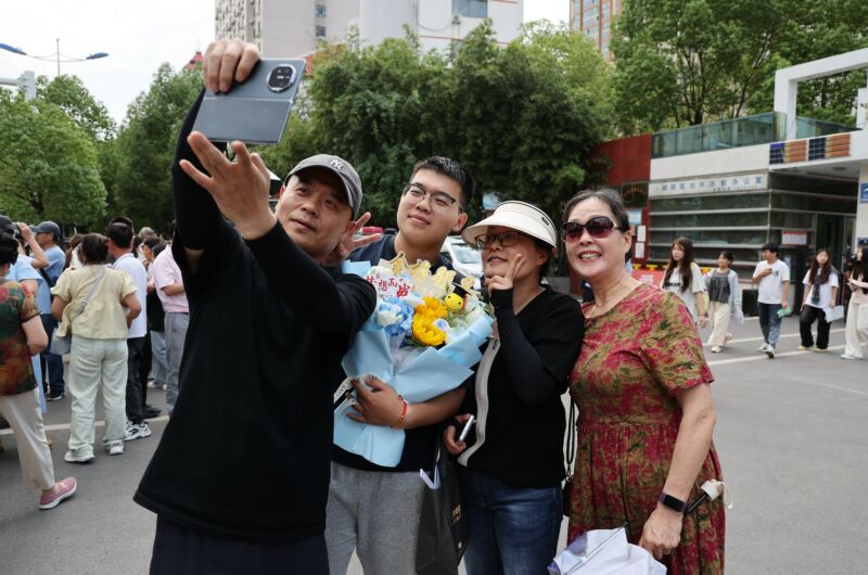 6月9日下午,歷時三天的2025年全國高考順利結束,考生們邁出考場,以蓬勃朝氣迎接人生嶄新階段。圖一、考生們輕松走出龍湖中學考點校門。圖二、考生與父母親友快樂合影紀念。