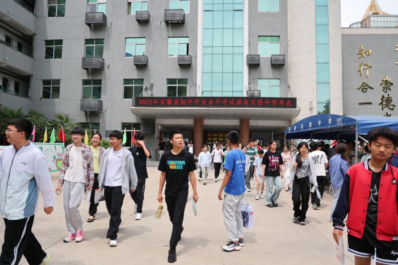 6月14日,為期三天的2025年安徽省初中學(xué)業(yè)水平考試開考。我市共有40362名考生報名應(yīng)試,他們將分布在27個考點、1348個考場參加考試。圖為6月15日中午,參加完數(shù)學(xué)科目考試的學(xué)生走出考點。