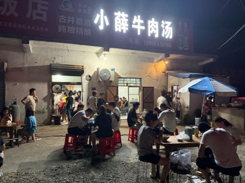 近日凌晨,記者循著夜色探訪這家小店。不大的兩間店面,一間是煙火繚繞的操作間,一間是擺放著幾張簡易桌子的用餐區。盡管已是深夜,這里卻座無虛席,桌旁坐著剛下夜班的工人、熬夜加班的上班族、代駕司機,甚至還有遠道而來的外地游客。店外,食客們自覺地排著長隊,等待著那一碗讓人念念不忘的牛肉湯。