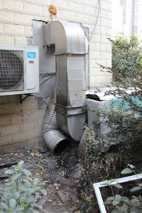 鑒于這種情況,淮河早報、淮南網記者來到春曉名城物業辦。物業辦負責人告訴記者:“對于飯店向小區內排放油煙的問題,我們也感到十分頭疼。油煙污染,導致小區樓房墻面遍布油污,前天我們才專門找人對小區墻面的油污進行了清洗,花費好幾千元。墻面的油污還可以清洗,但是彌漫在空氣中的油煙我們確實沒法消除。對此,我們物業也多次找飯店協商,但是由于我們物業沒有任何執法權,飯店對我們的要求置若罔聞。因為飯店排放油煙問題,導致35號、36號和37號樓的居民長期拒交物業費,為此,我們也十分傷神。只能希望行政執法部門能夠介入,以便徹底解決飯店污染小區環境的問題。”