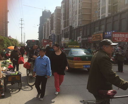 4月1日上午9時50分許,淮河早報、淮南網記者來到這條道路上,按照市民反映的情況,淮河早報、淮南網記者從該路的西頭往東頭走,西頭主要是賣水果、蔬菜的攤點,偶而有賣衣服的攤販在叫賣,一路走著,不時遇上幾個騎著電動車或自行車的,稍不留神就會碰上。還有的市民可能在買菜時遇到熟人,他們也沒有考慮太多,直接就站在道路中間說笑聊天,直到汽車的喇叭聲響起,才慢悠悠地走到旁邊接著聊。不僅如此,還有個別幾輛三輪車竟擺在路中間,車主也不知在哪,導致從小區出來的私家車無法前行,不停地按著喇叭,希望車主能早點把三輪車挪走。
