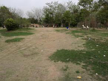 圖三:原本綠油油的草地被市民踩踏成不毛之地