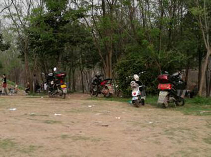 圖二:前來(lái)游玩的市民隨意將電動(dòng)車(chē)和摩托車(chē)騎進(jìn)景區(qū)內(nèi)