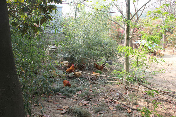 圖二:老龍眼濕地公園內(nèi)散養(yǎng)的雞群
