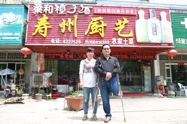 2001年,白色家電銷售進入微利時代,朱士兵偶爾從朋友那里聽說轉(zhuǎn)賣葡萄干可以掙錢的商機后,借貸100余萬元在合肥開了一家經(jīng)營葡萄干、瓜子、核桃等干貨的食品公司。公司開張后,朱士兵拄著拐杖一年到頭全國各地跑業(yè)務(wù),漸漸的他在市場中站穩(wěn)了腳跟,年銷售額一度超過2000余萬元。2008年因女兒上學(xué)需要,朱士兵夫婦告別省城,回到家鄉(xiāng)壽縣,并于2014年在縣城的明珠大道旁開了壽州廚藝酒店。為了做出特色,朱士兵的酒店走起綠色、土菜路線,其酒店葷菜原材料全部來自農(nóng)家散養(yǎng)牲畜家禽,臘味也都是自家腌制。因不做“黑心菜”,食品安全衛(wèi)生,價格公道,朱士兵的壽州廚藝酒店漸漸獲得食客肯定并多次受到工商等部門的表彰。