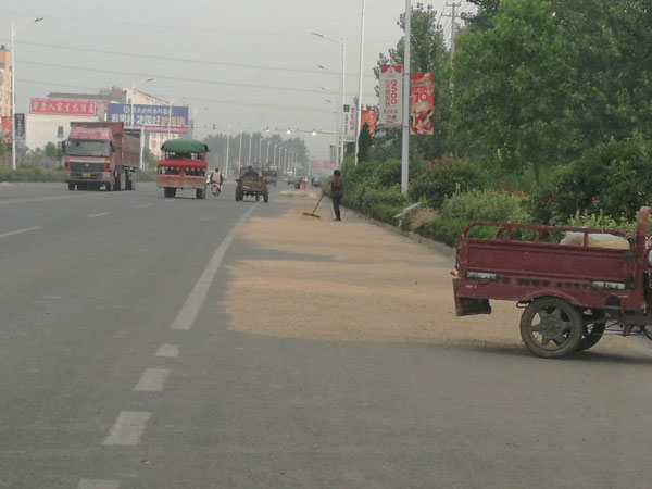 淮河早報、淮南網記者駕車行駛了一段路,發現在馬路邊上打場的村民對過往的車輛視若無睹,我行我素地曬著自家的麥子。這不僅對自己的安全不顧,也給過往的車輛造成安全隱患。
